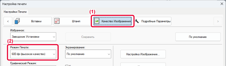 Выбирайте этот режим для печати цветных фотографий с высоким разрешением, а также для четкой печати тонких линий. |