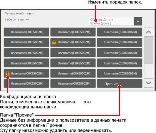 → [Установки Принтера] → [Настройки печати моей папки].
