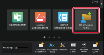 Если на сенсорной панели нет кнопки [Печать моей папки], добавьте кнопку [Печать моей папки] на главный экран. Подробную информацию о том, как добавить кнопку, см. в разделе " ДОБАВЛЕНИЕ КНОПОК БЫСТРОГО ВЫЗОВА".