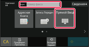 Чтобы ввести номер получателя, коснитесь кнопки [Прямой Ввод] или [Номер факса].
