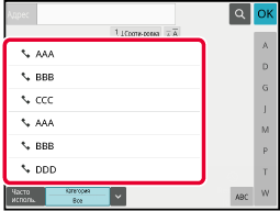 клавиши на экране адресной книги. (Быстрый вызов)