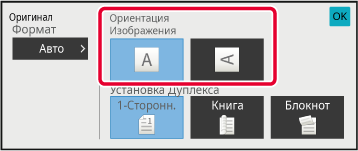 Коснитесь кнопки [Ориентация Изображ.], соответствующей ориентации размещенного оригинала.