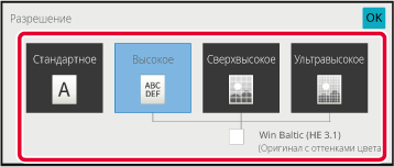 Если оригинал представляет собой фотографию или в нем имеются переходы цвета (например, цветной оригинал), и вы хотите добиться более четкого изображения, чем при использовании только режима [Высокое], [Сверхвысокое] или [Ультравысокое], установите флажок [Полутона] (