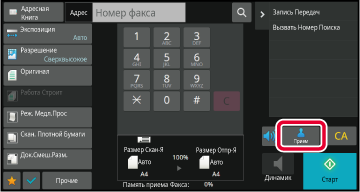 Факс можно принять в ручном режиме с помощью сенсорной панели.