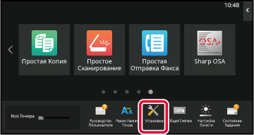 Убедитесь, что мигает информационный индикатор, затем коснитесь кнопки [Установки] на главном экране.