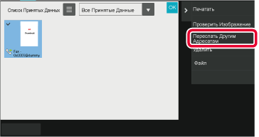 Коснитесь кнопки полученных данных, которые нужно переслать, затем коснитесь кнопки [Переслать Другим Адресатам].