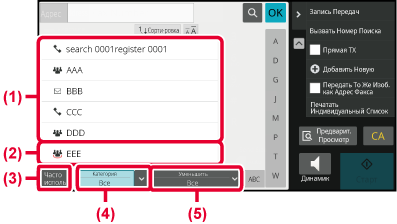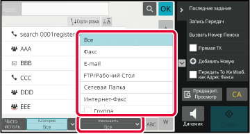 коснитесь кнопки [Адресная Книга] на основном экране. Адресную книгу