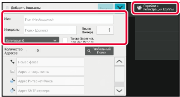 Коснитесь [Добавить Новую] на панели действий на экране адресной книги либо коснитесь значка [Управление Адресами] на главном экране.
