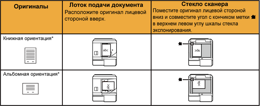 Укажите ориентацию оригинала, размещенного в шаге 1.