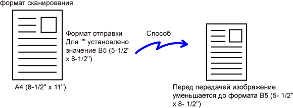 будет указан формат отправки, меньший формата сканирования, изображение