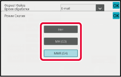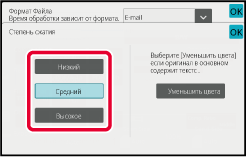 (В моделях BP-51M26/BP-51M31/BP-51M36/BP-51M45/BP-51M55/BP-51M65 требуется комплект расширения для оптического распознавания символов.) Коснитесь кнопки [Режим Сжатия] или [Степень сжатия].