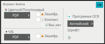 Если комплект расширения функции OCR не установлен на BP-51M26/BP-51M31/BP-51M36/BP-51M45/ BP-51M55/BP-51M65, или когда в системных настройках установлено [Отключение распознавания текста OCR].