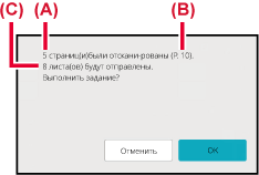 После завершения сканирования раздастся звуковой сигнал.По завершении сканирования проверьте количество листов оригинала и количество подготовленных к передаче листов, затем коснитесь кнопки [OK], чтобы начать передачу.
