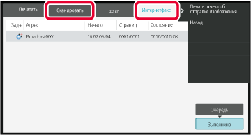 задания сканирования. Коснитесь вкладки [Интернетфакс], чтобы проверить