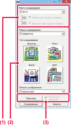 Меню "Режим сканирования":