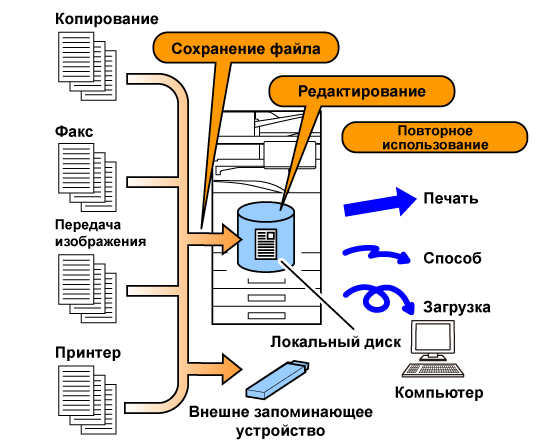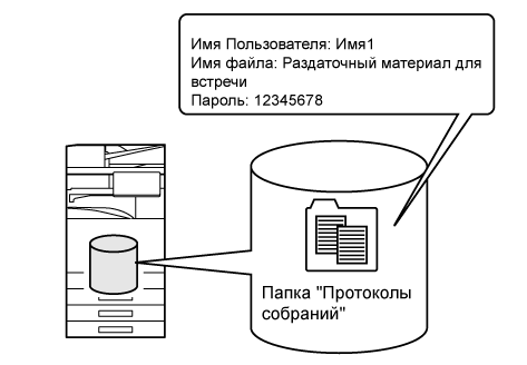 Эта функция позволяет сохранить на локальном диске данные, полученные при копировании, передаче изображений и выполнении других заданий. Используйте эту функцию, если необходимо быстро сохранить данные без ввода имени файла и другой информации. Сохраненный файл может быть использован другими пользователями. Не применяйте этот способ для сохранения файлов, которые не должны использоваться другими. |