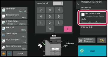 Эта функция позволяет сохранить на локальном диске данные, полученные при копировании, передаче изображений и выполнении других заданий. В отличие от функции "Быстрое Сохранение", при сохранении файла можно указать разные типы информации, что позволяет эффективно управлять файлами. Можно также указать пароль. |