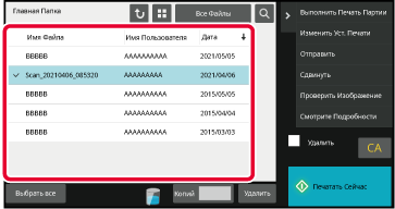 Выберите папку, чтобы отобразить сохраненные в ней файлы. Выберите файл, который требуется вызвать.