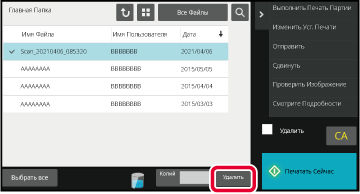 не выбрана, файлы будут удалены после выхода аппарата из режима