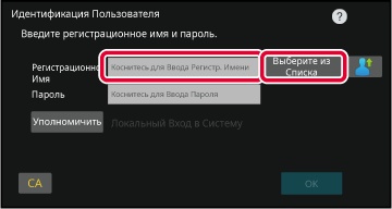 Выбор из списка Коснитесь кнопки [Выберите из Списка] и выберите имя пользователя