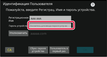 регистрационному имени / паролю устройства, на отображающемся экране
