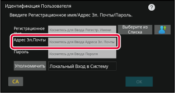 Коснитесь текстового поля [Адрес Эл.Почты] и введите свой адрес электронной