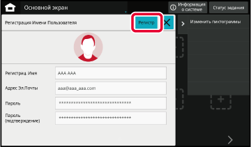 Введите информацию о пользователе и коснитесь кнопки [Регистр].