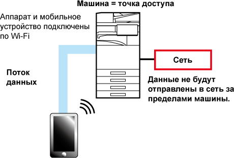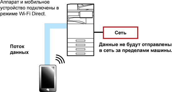 с помощью Wi-Fi непосредственно. В этом режиме недоступен обмен