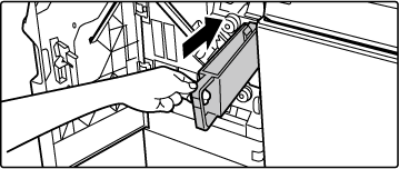 Chyťte rukoväť nádoby na odpad z dierovania, jemne nádobu vytiahnite a odpad vyhoďte.