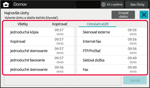 Keď klepnete na tlačidlo [Východzia obrazovka], na dotykovom
