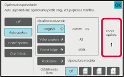 VÝBER ORIENTÁCIE A VEĽKOSTI ORIGINÁLUKlepnite na tlačidlo [Počet čelných] a nastavte počet opakovaní.