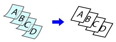 Toto nastavenie použite v prípade originálov s 2 typmi rôznych veľkostí, ale s rovnakou dĺžkou strán. Originály vložené do zásobníka podávača dokumentov so stranami rovnakej dĺžky zarovnané naľavo. • A3 a A4 • B4 a B5 • A4R a A5 • 11" x 17" a 8-1/2" x 11" • 8-1/2" x 14" a 8-1/2" x 11"R • 8-1/2" x 14" a 5-1/2" x 8-1/2" • 8-1/2" x 13" a 8-1/2" x 11"R • 8-1/2" x 13" a 5-1/2" x 8-1/2" • 8-1/2" x 11"R a 5-1/2" x 8-1/2" |
