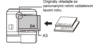 Originál umiestnite do zásobníka podávača dokumentov lícom nahor s rohmi zarovnanými vo vzdialenom ľavom rohu.