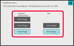 Rozlíšenie je možné nastaviť pre podávač dokumentov a predlohové sklo. Po dokončení nastavení klepnite na tlačidlo [OK] a potom na tlačidlo [Späť].