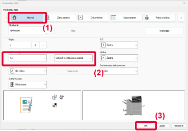 a "Veľkosť výstupu" je nastavené na [Veľkosť rovnaká ako originál], "Typ papiera"