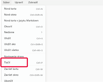 Z ponuky [Súbor] programu Notepad vyberte možnosť [Tlač].