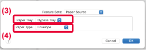- Vyberte veľkosť obálky v ponuke "Paper Size".