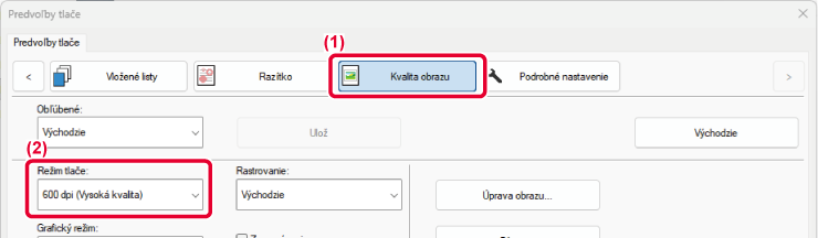 Pre režim tlače (rozlíšenie) sú k dispozícii nasledujúce