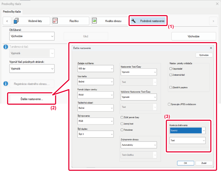 na korekciu tieňovania a potlačenie vzhľadu hrubšieho textu a čiar.