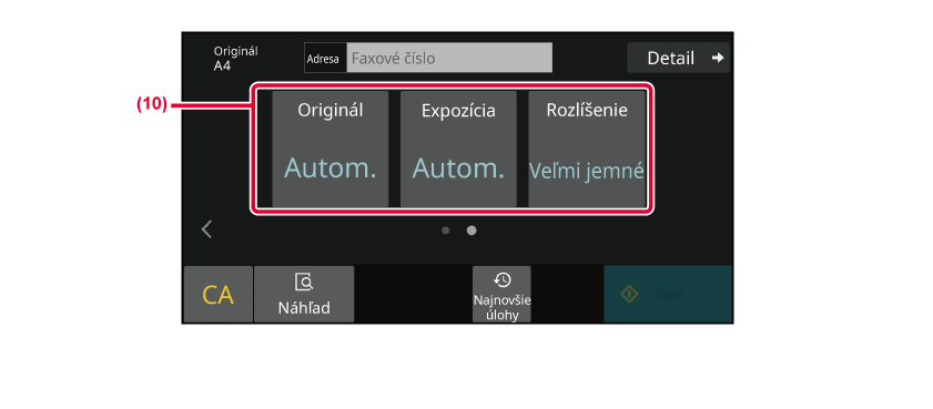 - Zobrazuje funkcie dostupné v režime faxu.