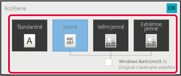 Toto nastavenie vyberte, ak má originál malý text alebo grafy s jemnými líniami. Originál bude naskenovaný v dvojnásobnej rozlíšení nastavenia [Štandardné]. |