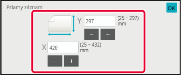 Klepnite na tlačidlo [Priamy záznam] a potom zadajte veľkosť skenovania.