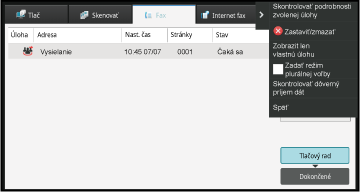v zozname. Ak chcete overiť stav faxovej úlohy, klepnite na zobrazenie