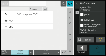 Ak chcete zobraziť adresár, ťuknite na tlačidlo [Adresár]