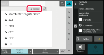 Ťuknutím na tlačidlo [Zoradiť] sa zobrazí zoznam