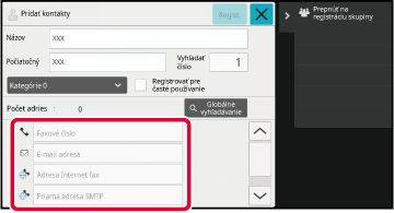 Ťuknite na [Faxové číslo], [E-mail adresa], [Adresa Internet fax],