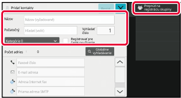Na obrazovke adresára klepnite na tlačidlo [Pridať nové] na paneli akcií alebo klepnite na ikonu [Riadenie adresára] na domovskej obrazovke.