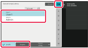 Ťuknite na položku [použív.] alebo [Skupina] a určte, pre koho sa má adresa publikovať.