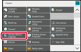 NAČÍTANIE CIEĽOVÉHO UMIESTNENIA Z ADRESÁRAKlepnite na tlačidlo [Ostatné] a potom na tlačidlo [Úprava náklonu originálu].
