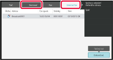 kartu [Skenovať]. Ak chcete overiť stav úlohy internetového faxu,